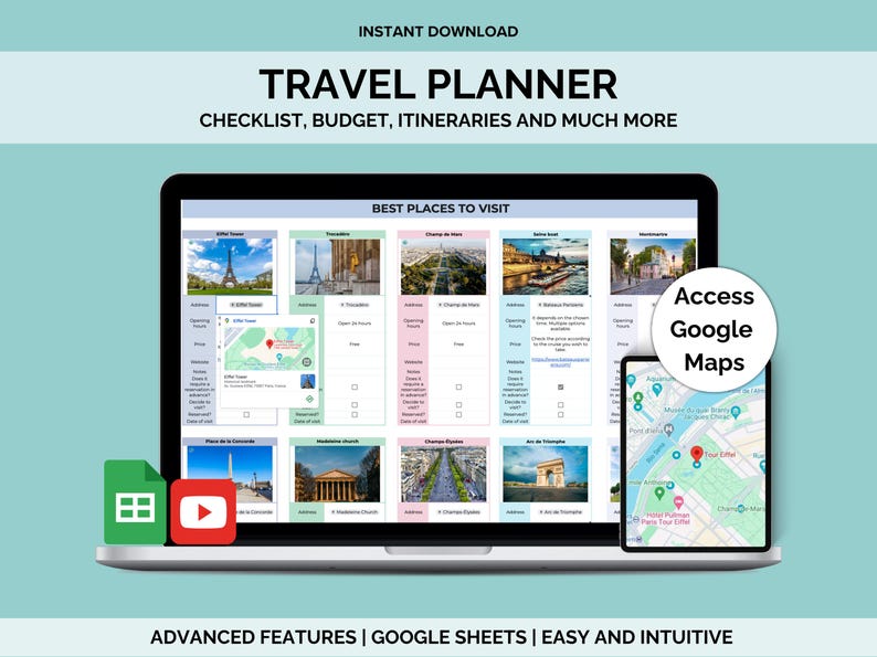 Ready to Plan Your Dream Vacation? Get Your All-in-One Travel Planner Template with Budget, Google Maps, Packing List, Itinerary, Travel Comparison Tool, and More!