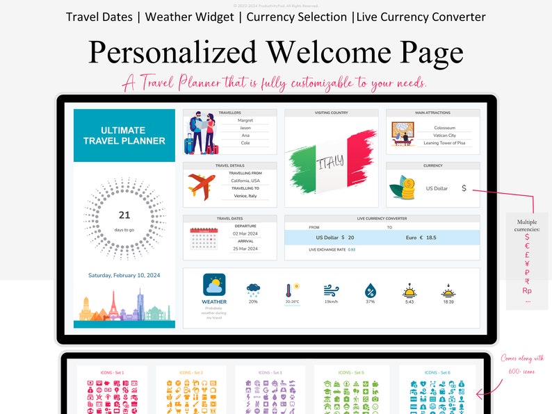 Follow the instructions provided in the detailed guide to set up the travel planner sheet as per your personal preference. Further, if you have any questions, please do not hesitate to contact me via . Happy Holidays!