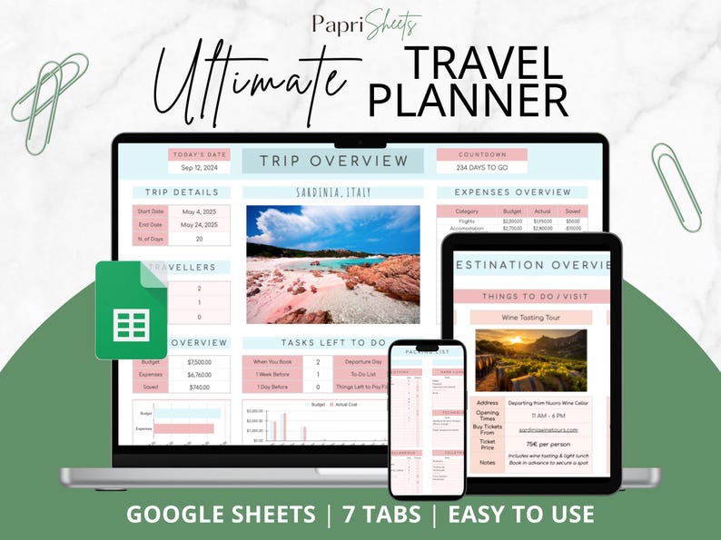 Plan your next adventure with ease using our Travel Planner Google Sheets!