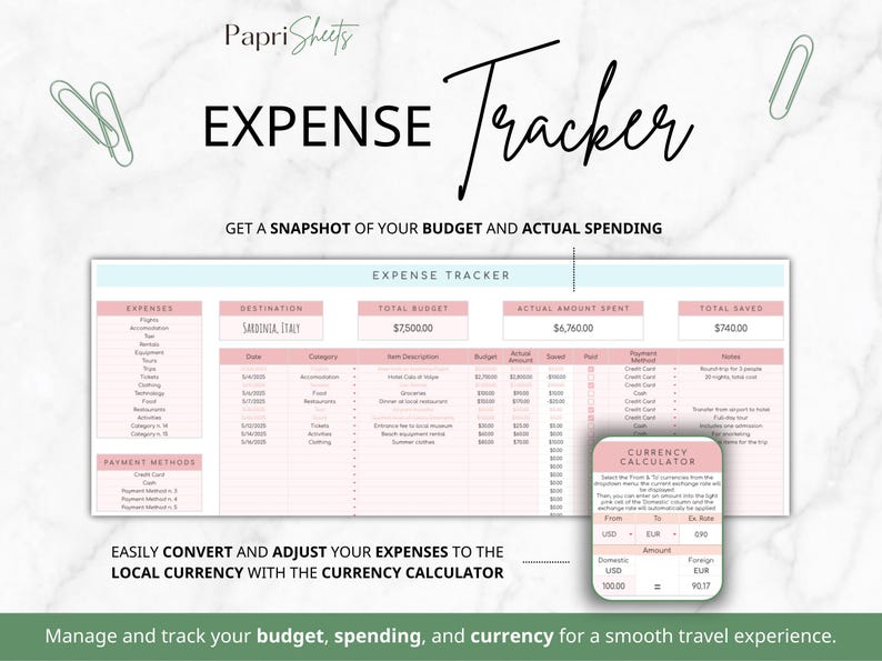 For additional spreadsheet solutions and color options, visit our shop >>> a quick note: This is a digital download (no physical products will be shipped), so you’ll get instant access to start budgeting right away, no delivery wait! It’s for your personal use only, and all the designs are copyrighted by PapriThings. Basically, you can use it to organize your finances, but please don’t share or sell it to others (we put a lot of care and love into creating it!).