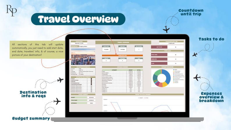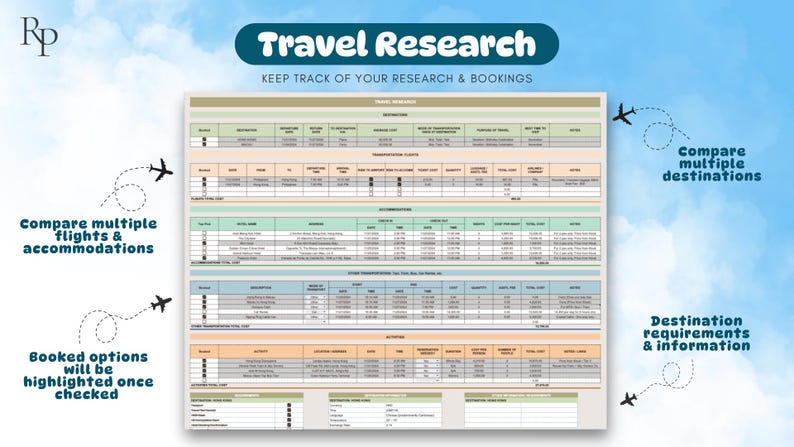 After purchase, you will receive 1 PDF file with the instructions to access the template + a pre-filled sample of the ultimate travel planner!