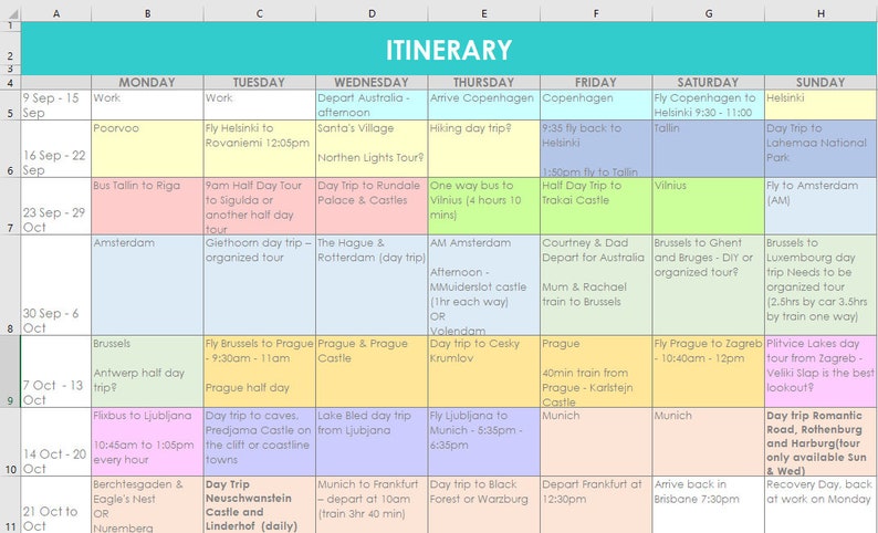 Travel Planning excel spreadsheets itinerary monthly organizer by day vacation trip holiday template diy resource tool instant downloadTravel Planning excel spreadsheets itinerary monthly organizer by day vacation trip holiday template diy resource tool instant download