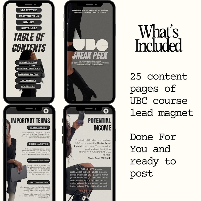 This UBC Lead Magnet is designed for faceless digital marketing strategies and comes with Master Resell Rights, allowing you to profit from reselling it. Our DFY Digital Product is perfect for UBC Marketing and social media marketing, helping you generate leads effortlessly.