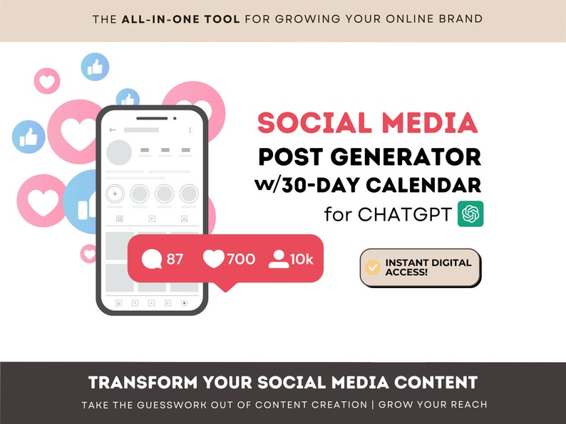 Elevate your social media game with our ChatGPT Social Media Post Generator with 30-day Content Calendar! We’ve developed a tool that combines cutting-edge technology with marketing prowess to revolutionize your social media strategy. Our tool allows you to effortlessly generate high-quality social media posts in an instant.