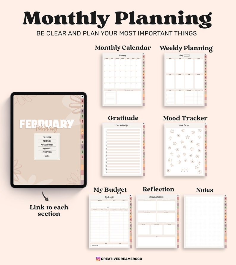 This Undated Digital Planner Goodnotes is copyrighted by your Creative Dreamers. This purchase is strictly for non-commercial, personal use only. You may not resell, reproduce, distribute by electronic means, or profit in any way from the design.