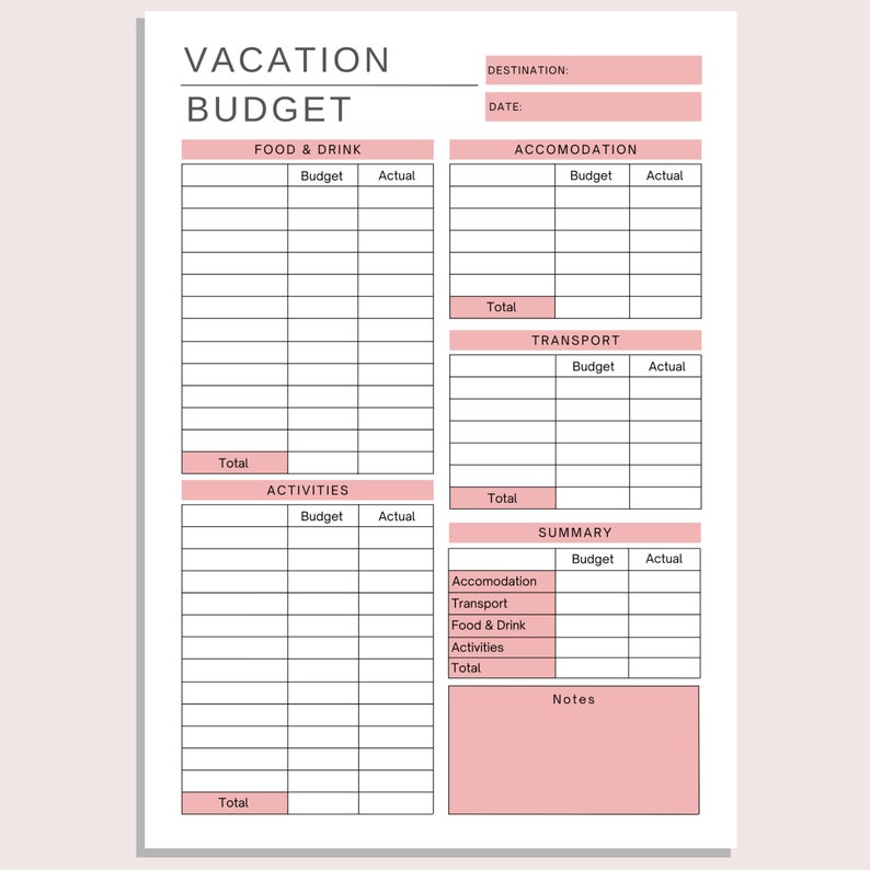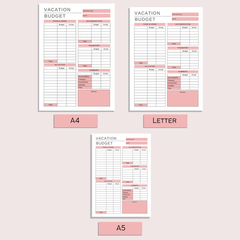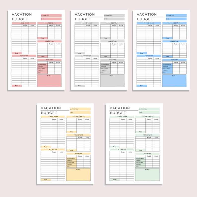 Keep track of all your vacation budgets in one sheet! Easy to use and instantly downloadable. Available in 5 colours.