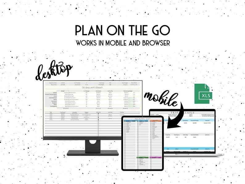 This excel template digital download will help plan your best vacation ever, with a travel budget and expense tracker, with printable trip details, itinerary template, and packing list.