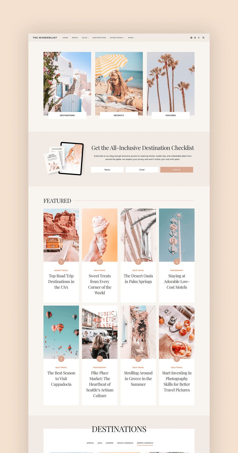 LIVE DEMO : – Meet Wanderlust, our latest WordPress theme for travel bloggers. This feminine WordPress theme is packed with a lot of cool features like post highlights and easy-to-use affiliate blocks, tons of styled Kadence and Gutenberg blocks, plus fun travel-themed graphics. Not only is it SEO optimized and quick to load, but its also lightweight, ensuring your site runs smoothly and quickly, enhancing the user experience and improving search engine rankings.